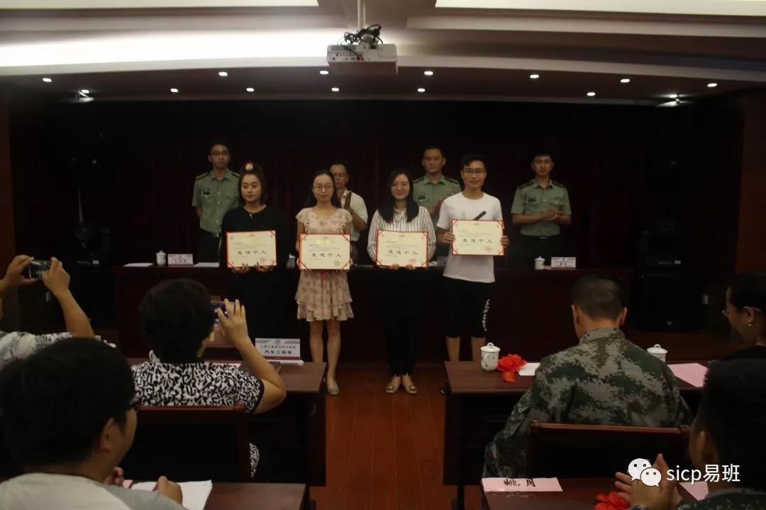 接着学院党委武装部负责人王昊骋宣布了2018年获得上海工商职业技术学院征兵先进集体和个人并为他们颁奖。获得学院征兵工作先进系部为计算机信息系,餐旅服务学院;获得学院征兵工作个人先进为吕伟老师,朱超慧老师,陈嘉玲老师,蓝雪老师。
