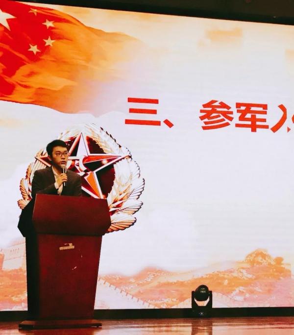 第一个环节,各系会议先由征兵宣讲团中的各位退伍军人讲述他们在军旅生涯中的故事。即使他们已经退伍,成为一名普通的高校学子,但当他们提起自己的军旅生活都颇有感触:“当兵后悔两年,不当兵后悔一辈子。”