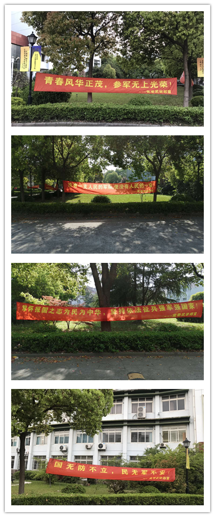 本次征兵动员覆盖面广,参与度高,由上至下广泛宣传,积极动员并在嘉定、青浦两校区悬挂征兵宣传横幅,每系下发征兵入伍宣传手册,要求适龄青年人手一份,设立两校区的征兵工作咨询点。在微信,易班网,校园电子屏上进行统一宣传,滚动播放,采用线上线下相结合的方式进行征兵动员宣传,效果显著。