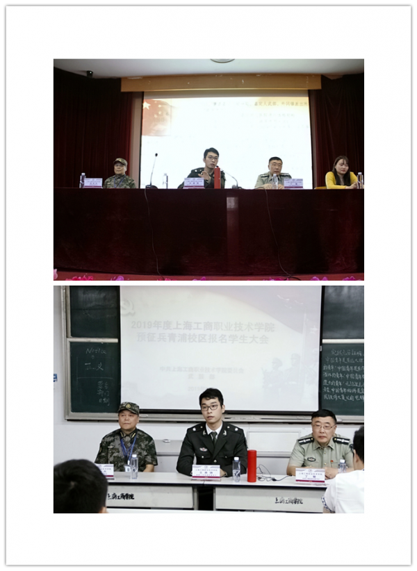 2019年5月15日至5月16日,按照学院党委具体安排部署,武装部分别在嘉定、青浦校区召开2019年度上海工商职业技术学院预征兵报名学生大会。参加会议的有:学院党委武装部副部长王昊骋、机电工程系党支部书记丁敏、珠宝系党支部书记范传杰、党委武装部万漪妮,各系征兵工作分站站长、辅导员老师及255名报名参军学生。