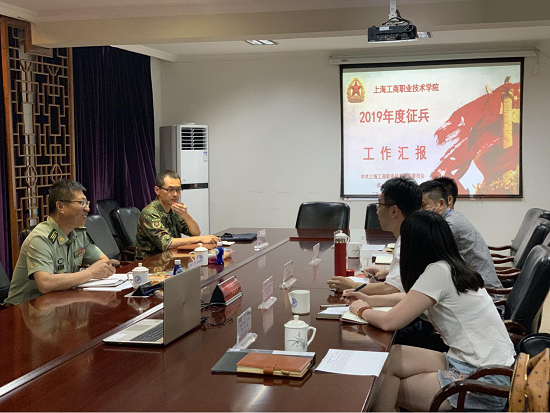 7月4日上午9时嘉定区人民武装部政治委员魏进文、军事科科长王同来我院指导检查武装工作,我院武装部副部长王昊骋、武装部干事万漪妮,珠宝系征兵工作分站站长张永辉,艺术系征兵工作分站站长顾永佳,商务与管理系征兵工作分站站长宋招科参会。