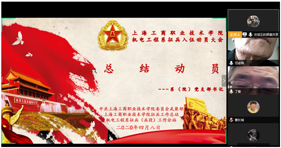 按照学院党委2020年度征兵工作调整计划,机电工程系积极动员大学生参军入伍。因疫情原因机电工程系于4月8日下午5点在线上举办了征兵入伍动员大会。机电工程系党支部书记丁敏,珠宝系范传杰,机电工程系全体辅导员,机电工程系所有报名入伍学生参加了此次大会。会议由机电工程系征兵(兵役)工作分站站长宋淳正主持。