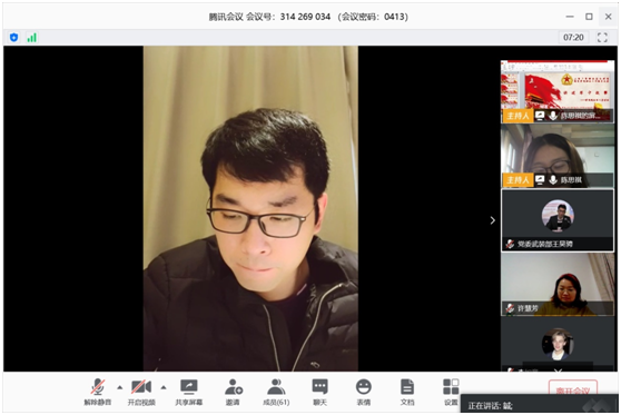 为了更好地响应国家征兵入伍政策,更好地让当代大学生了解征兵的相关知识,为国家征集高素质兵员,教育学院于2020年4月13日下午16点10分在“腾讯会议app”上召开征兵动员大会。参加会议的有:党委武装部副部长王昊骋,教育学院党支部书记许慧芳,教育学院总支书记王惠老师,17级辅导员胡迎鑫老师以及17级,18级,19级全体适龄参军青年学生,本次会议由教育学院征兵(兵役)工作分站站长陈思祺老师主持。