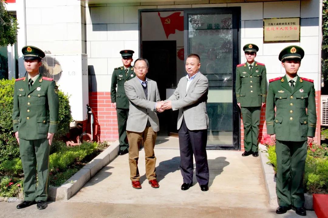接着张彩明,金伟国为上海工商职业技术学院退役军人服务站揭牌。