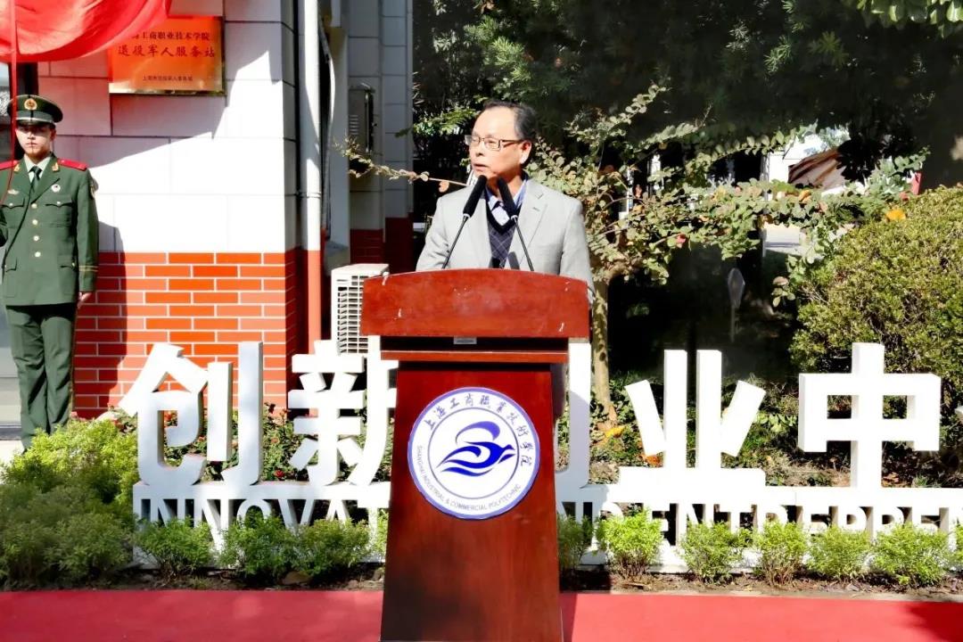10月30日上午10时,上海工商职业技术学院隆重举行退役军人服务站揭牌仪式,出席本次活动的领导有嘉定区退役军人事务局党组书记、局长张彩明,党组成员、副局长宗志坚,副局长刘权,外冈镇副镇长徐雪平,我校党委书记金伟国,出席活动的还有区、镇有关单位领导,嘉定区各高校武装部长,武装干事,我校各相关党政职能部门领导,各系(院)党支部书记,退役军人工作分站站长以及退役学生士兵代表。